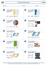 5th Grade Fractions, Decimals and Percent Worksheets The 5th grade fractions, decimals and percent worksheets present an array of such problems on decimals to fraction conversions using simplification, and decimals to mixed numbers using tenths or hundredths. These problems help strengthen a student's understanding of how to form a fraction based on different positions of the decimal point.